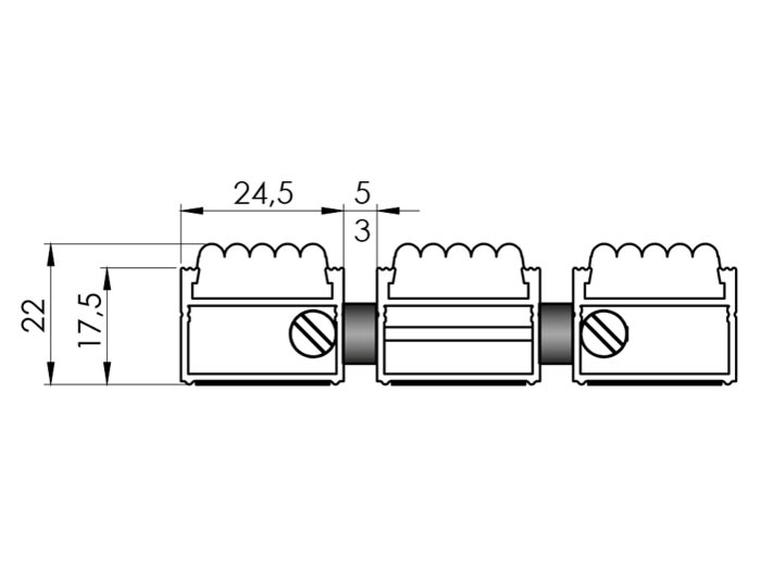 Bracket profile - aluminium - alloy 6060T6 Cleaning contribution: „baize” (carpet) - composition: 80% goat fur, 20% sheep wool „fi 2” wire rope Distance bushes: width 3mm, 5mm of hardness 75Sh Nickel plated terminal keys, acoustic tape (bottom of the profiles) |